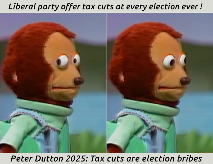Peter Dutton - Tax cuts are election bribes - monkey meme (2025)